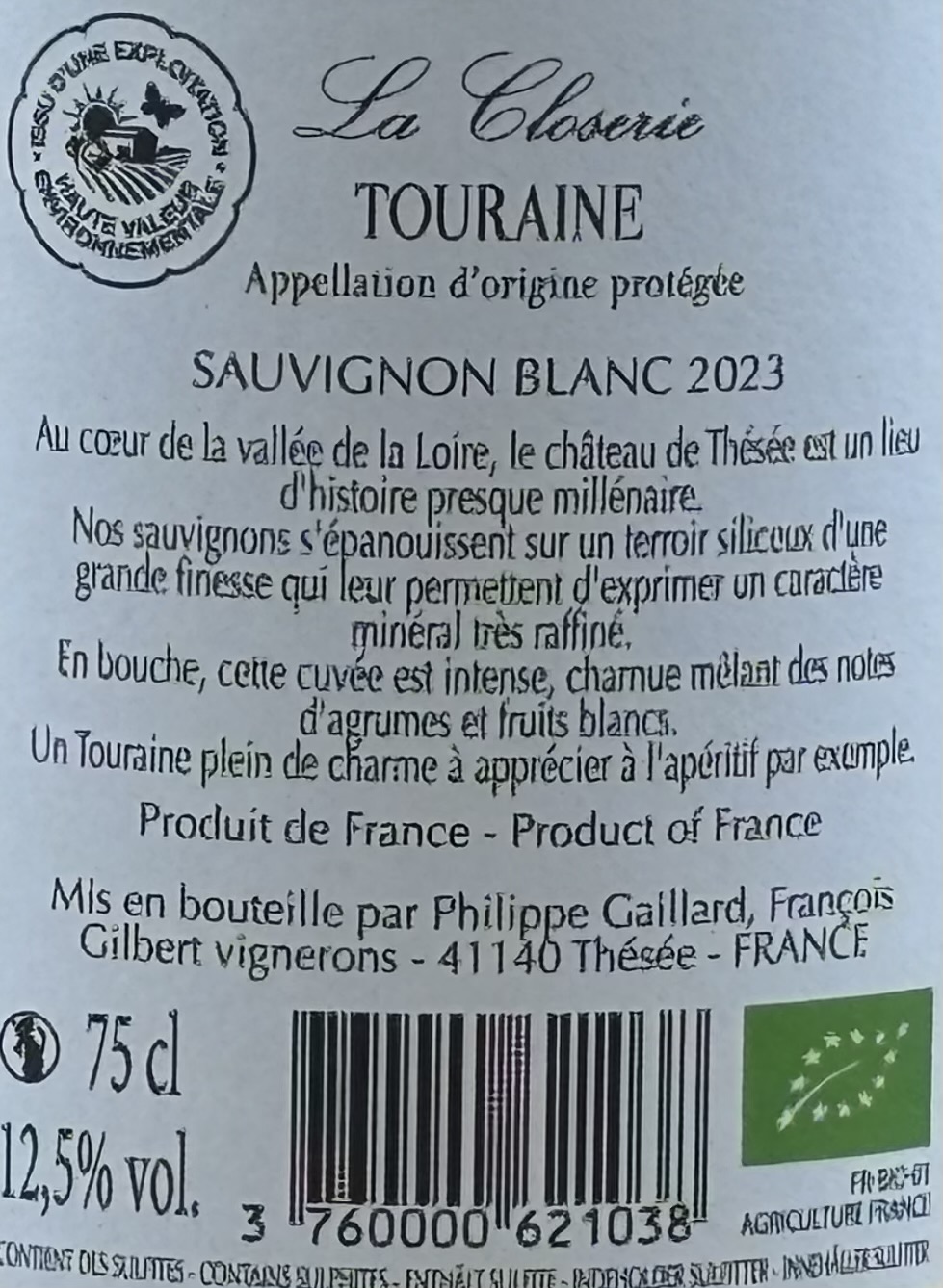 Denne vin kommer fra Touraine i Loire-dalen i Frankrig og er produceret af Château de Thésée. Vinen bærer appellationen AOP Touraine og er lavet på Sauvignon Blanc fra et fint, siliciumholdigt terroir, som giver vinen dens mineralske præg og elegante stil. Det er en klassisk Loire-hvidvin med friskhed, charme og tydelig regional karakter.